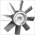 | Fläkthjul | Gjuten aluminium, GRP eller kolförstärkt komposit. |